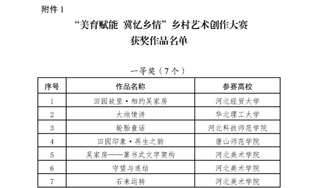 由河北省教育厅、河北省文化和旅游厅、河北省农业农村厅联合主办的“美育赋能 冀忆乡情”乡村艺术创作大赛圆满落幕。经过入围初评、落地展示、现场评审等多轮激烈角逐,tyc3556太阳集团城网址美术学院在此次大赛中脱颖而出,《田园印象·再生之韵》作品荣获一等奖,同时获得优秀指导教师奖及优秀组织奖。