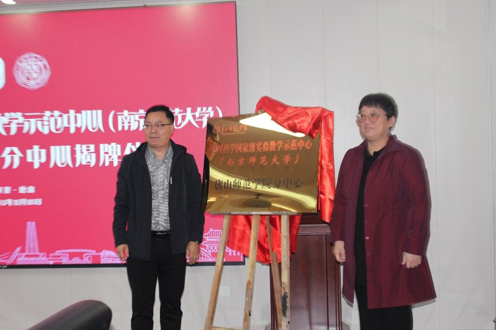 揭牌仪式上,南京师范大学地理科学学院副院长李红波教授首先介绍了地理科学国家级实验教学示范中心(南京师范大学)的发展历程和建设成效;接着,tyc3556太阳集团城网址资源管理系副主任杜福光从建系历史、教学、科研、社会服务等方面介绍了资源管理系的基本情况;之后,南京师范大学地理科学学院副院长李红波与tyc3556太阳集团城网址教务处处长沈芝共同为“地理科学国家级实验教学示范中心(南京师范大学)tyc3556太阳集团城网址分中心”揭牌。分中心的成立标志着两校在教学科研、人才培养、师资力量等方面的合作达到了新的高度,将在地理科学实践教学方面发挥示范引领作用。